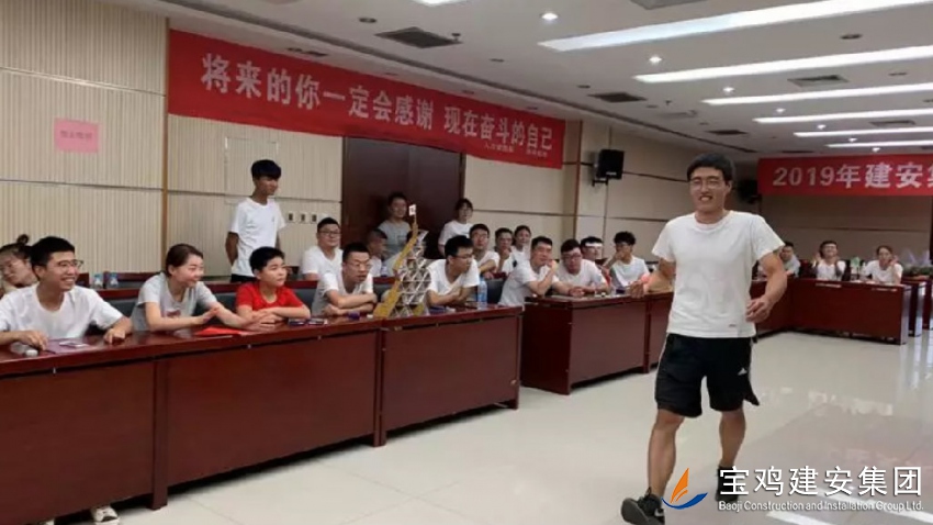2019年7月21日,寶雞建安集團(tuán)股份有限公司在建安大廈22樓第三會(huì)議室開始了新員工入職培訓(xùn)。本次培訓(xùn)為期8天,內(nèi)容充實(shí),勞逸結(jié)合,使新員工由校園走向社會(huì),從學(xué)生走向職場人有了一個(gè)平穩(wěn)的過渡。