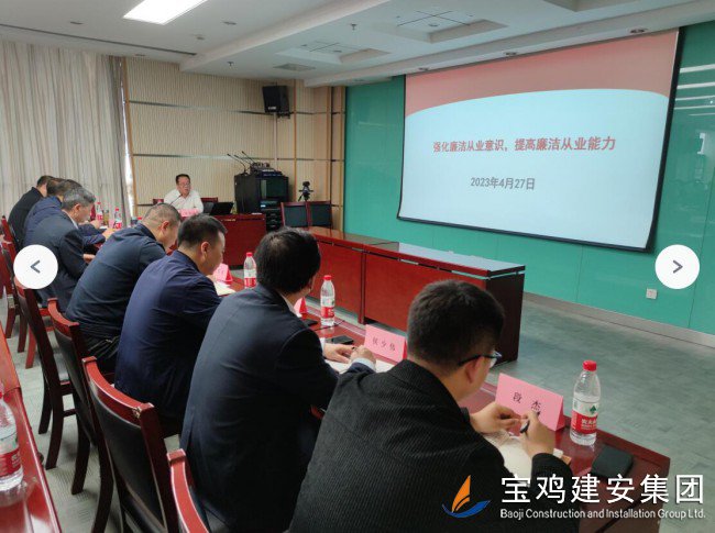 為認(rèn)真貫徹落實(shí)習(xí)近平總書記關(guān)于全面從嚴(yán)治黨重要指示批示精神,深刻汲取郭振山、頓小建嚴(yán)重違紀(jì)違法問題教訓(xùn),切實(shí)維護(hù)風(fēng)清氣正的政治生態(tài),全面建設(shè)廉政黨風(fēng),寶雞建安集團(tuán)公司黨委于4月27日下午在22樓第三會(huì)議室舉辦了黨風(fēng)廉政建設(shè)工作會(huì)議。