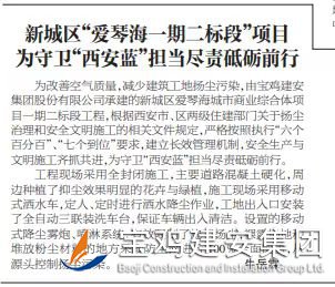 為改善空氣質(zhì)量,減少建筑工地?fù)P塵污染,由寶雞建安集團(tuán)股份有限公司承建的新城區(qū)愛琴海城市商業(yè)綜合體項(xiàng)目一期二標(biāo)段工程,根據(jù)西安市、區(qū)兩級(jí)住建部門關(guān)于揚(yáng)塵治理和安全文明施工的相關(guān)文件規(guī)定,嚴(yán)格按照執(zhí)行“六個(gè)百分百”、“七個(gè)到位”要求,建立長效管理機(jī)制,安全生產(chǎn)與文明施工齊抓共進(jìn),為守衛(wèi)“西安藍(lán)”擔(dān)當(dāng)盡責(zé)砥礪前行。