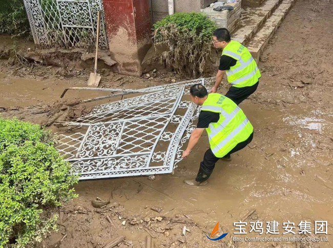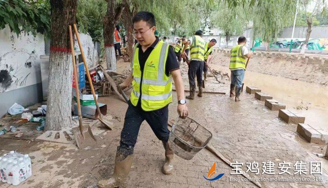 在這場沒有硝煙的災(zāi)后重建狙擊戰(zhàn)中,寶雞建安集團19日接到市、區(qū)兩級住建部門的通知后,第一時間就成立了由公司主要領(lǐng)導(dǎo)牽頭的清淤搶險小組。奔赴一線的志愿號召一經(jīng)發(fā)出,60多位熱血青年熱烈響應(yīng),大家踴躍報名、積極參與,迅速組建起隊伍,截至目前,已連續(xù)投入高強度勞作達(dá)四個工作日。
