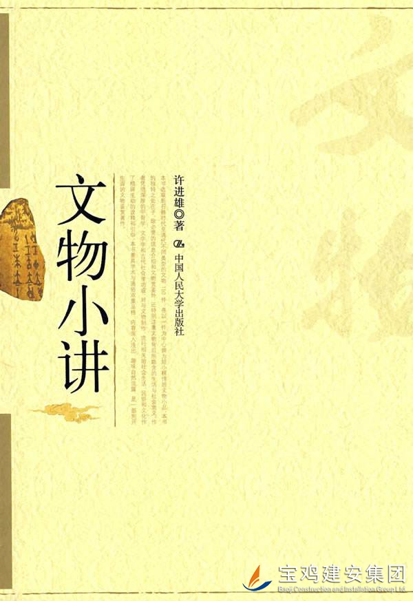 公司開展“書香企業(yè)”讀書月活動,提供了大量優(yōu)秀的各類書籍供員工閱讀,我有緣拜讀到一本臺灣著名學(xué)者許進(jìn)雄先生的作品《文物小講》。 這本書以通俗易懂而不失學(xué)術(shù)的小品文方式,介紹了150件中國文物。文物歷史橫跨新石器時代至清代,文體精悍短小,詮釋精辟生動,讓人閱讀時仿佛置身博物館中游覽,不知不覺引人入勝。